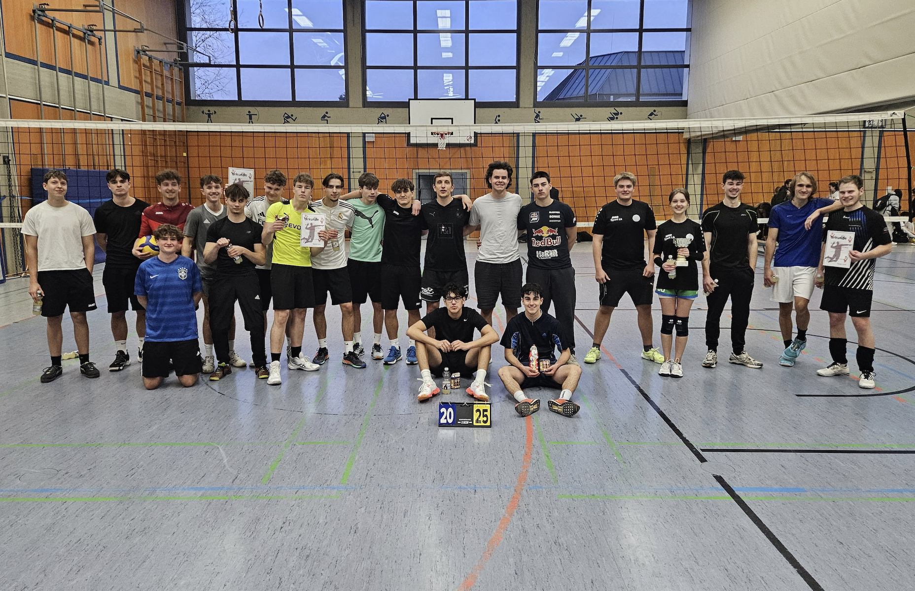 Das diesjährige Nikolaus-Volleyballturnier der Oberstufen erwies sich erneut als voller Erfolg. Im Mittelpunkt stand der Spaß am gemeinsamen Sporttreiben, und insgesamt elf Teams gingen hochmotiviert an den Start. Besonders stark vertreten war das Ölberggymnasium, das gleich drei Mannschaften ins Rennen schickte. Zudem sorgte ein „Ehemaligen-Team“ für zusätzliche Wiedersehensfreude und spannende Spiele.
