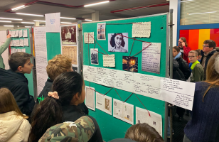Verschiedene Kurse von der 10. Klasse bis zur Q2 beteiligten sich an den Aktionen zum Internationalen Tag des Gedenkens an die Opfer des Holocaust 2024 am 27. Februar. Schon am Tag zuvor bereiteten Sie eine Ausstellung und Präsentationen vor, die zum einen an einzelne Opfer erinnerten, die aber aber auch unter dem Motto standen: "Nie wieder ist jetzt!"