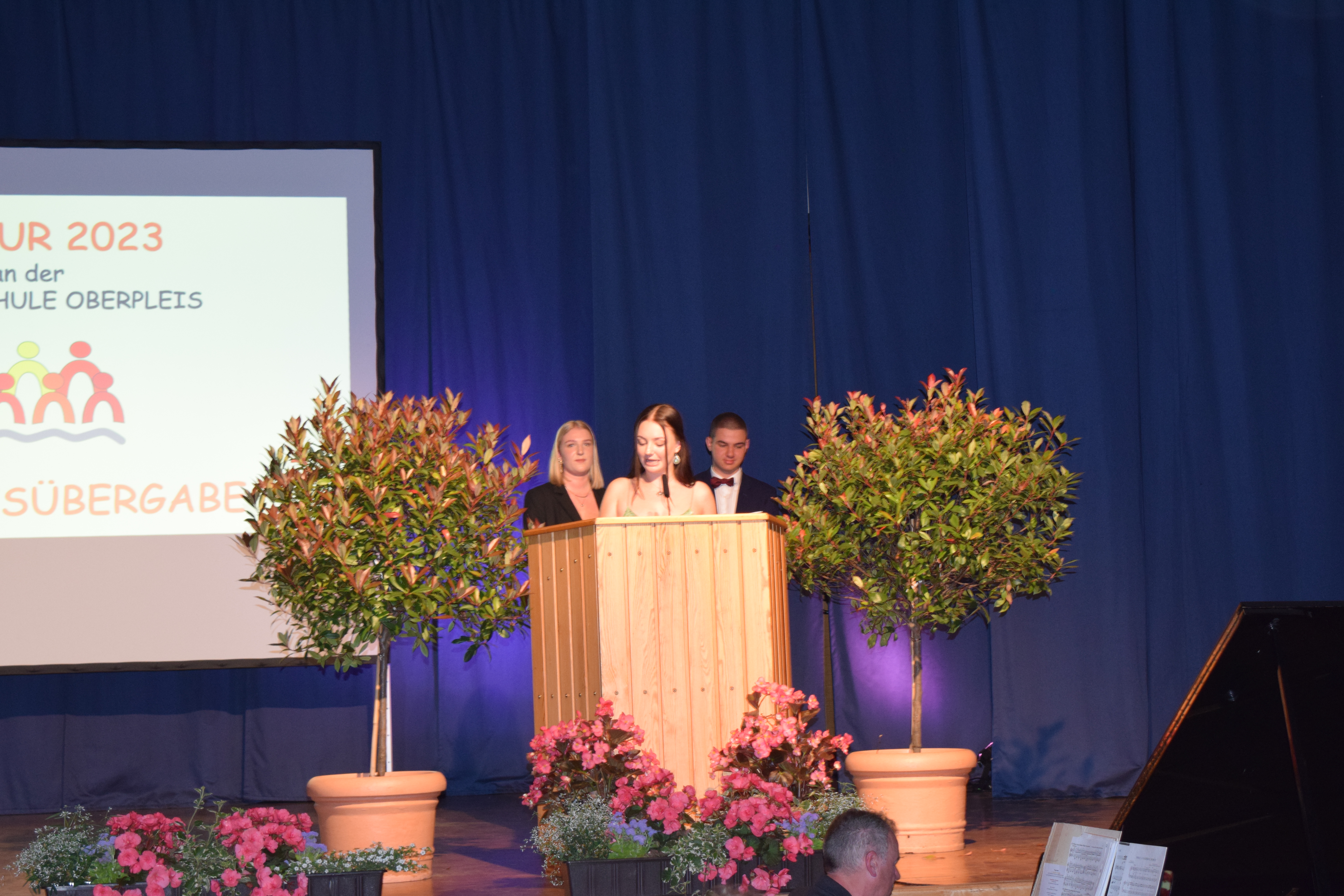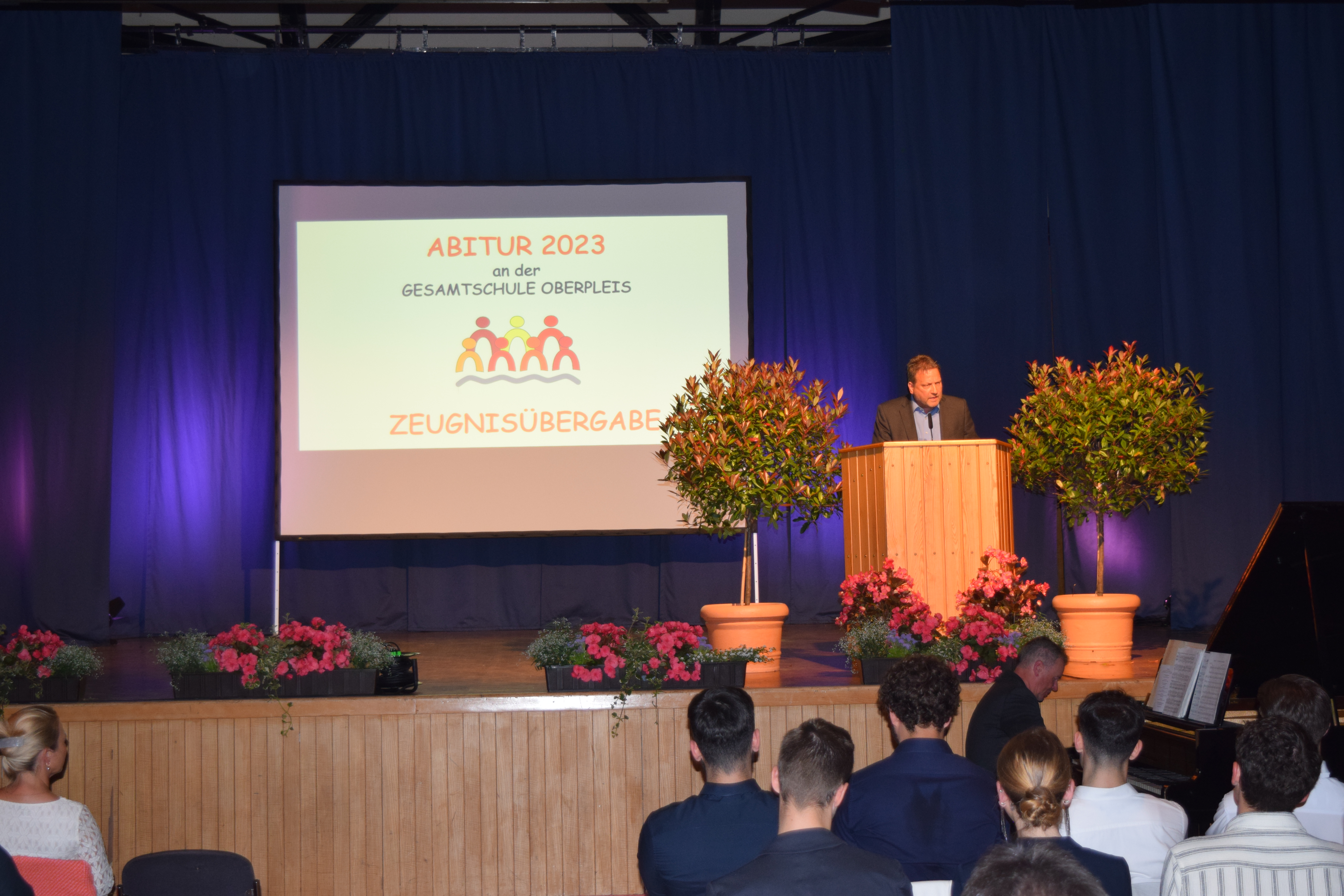 Mit hervorragenden Ergebnissen wurde der 2. Abiturjahrgang der Gesamtschule Oberpleis verabschiedet. In der Feierstunde in der Aula des Schulzentrums sprach Bürgermeister Lutz Wagner nicht nur allen Abiturienten Glückwünsche aus, sondern bedankte sich auch für die Arbeit der Schule. Dabei stellte er besonders heraus, dass von den 51 Abiturientinnen zu Beginn Ihrer Schullaufbahn an der Weiterführenden Schule nur 19 das Abitur als Prognose hatten. Dies unterstreiche die Bedeutung der Schule für die Stadt, dass einer breiteren Menge die Möglichkeit zum Zugang zum höchsten deutschen Schulabschluss gewährleistet werde.