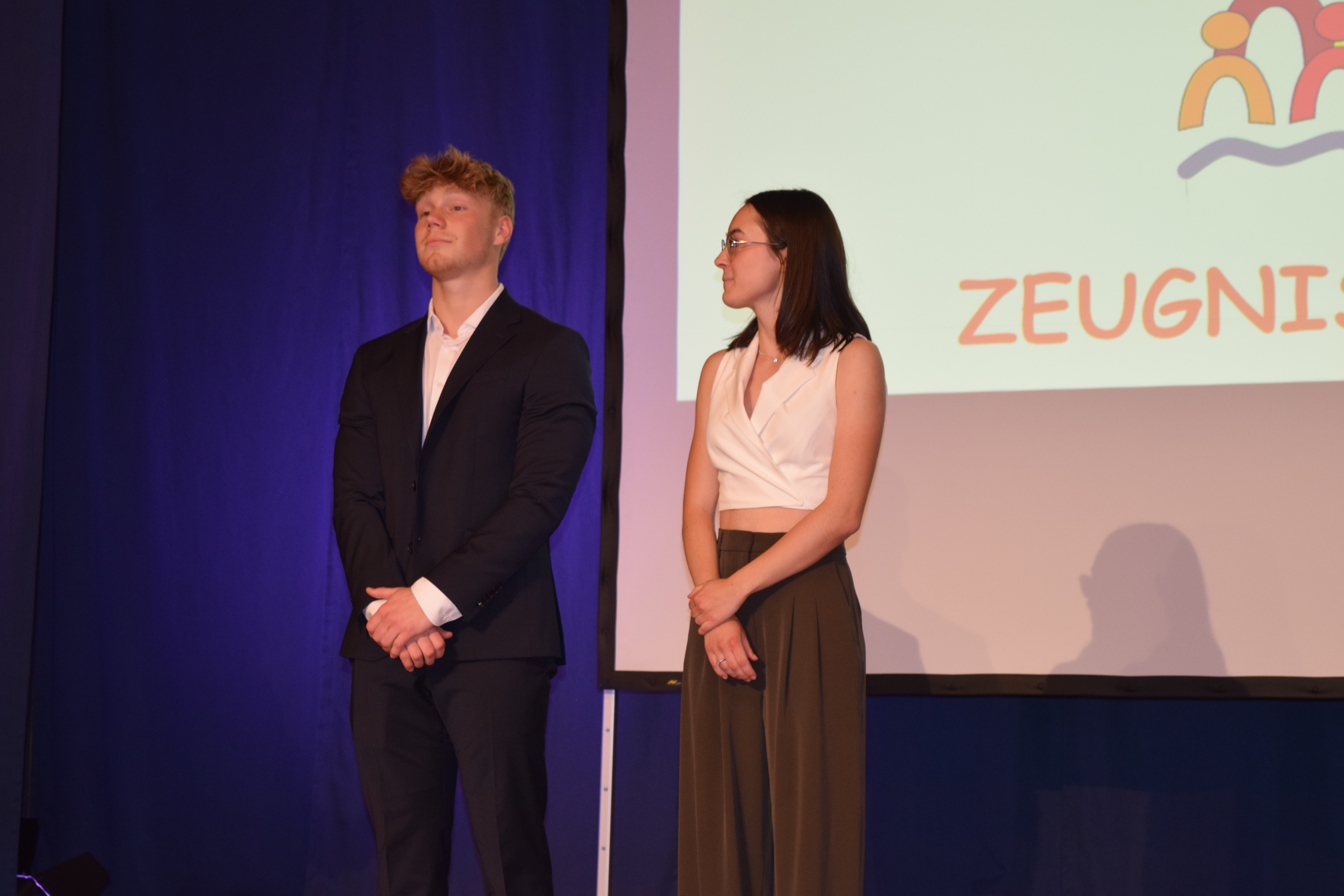 Besonders geehrt wurde die Leistungen der beiden Notenbesten Jonas Weinland (Abiturnote 1,0) und Julie Witsch (1,2)