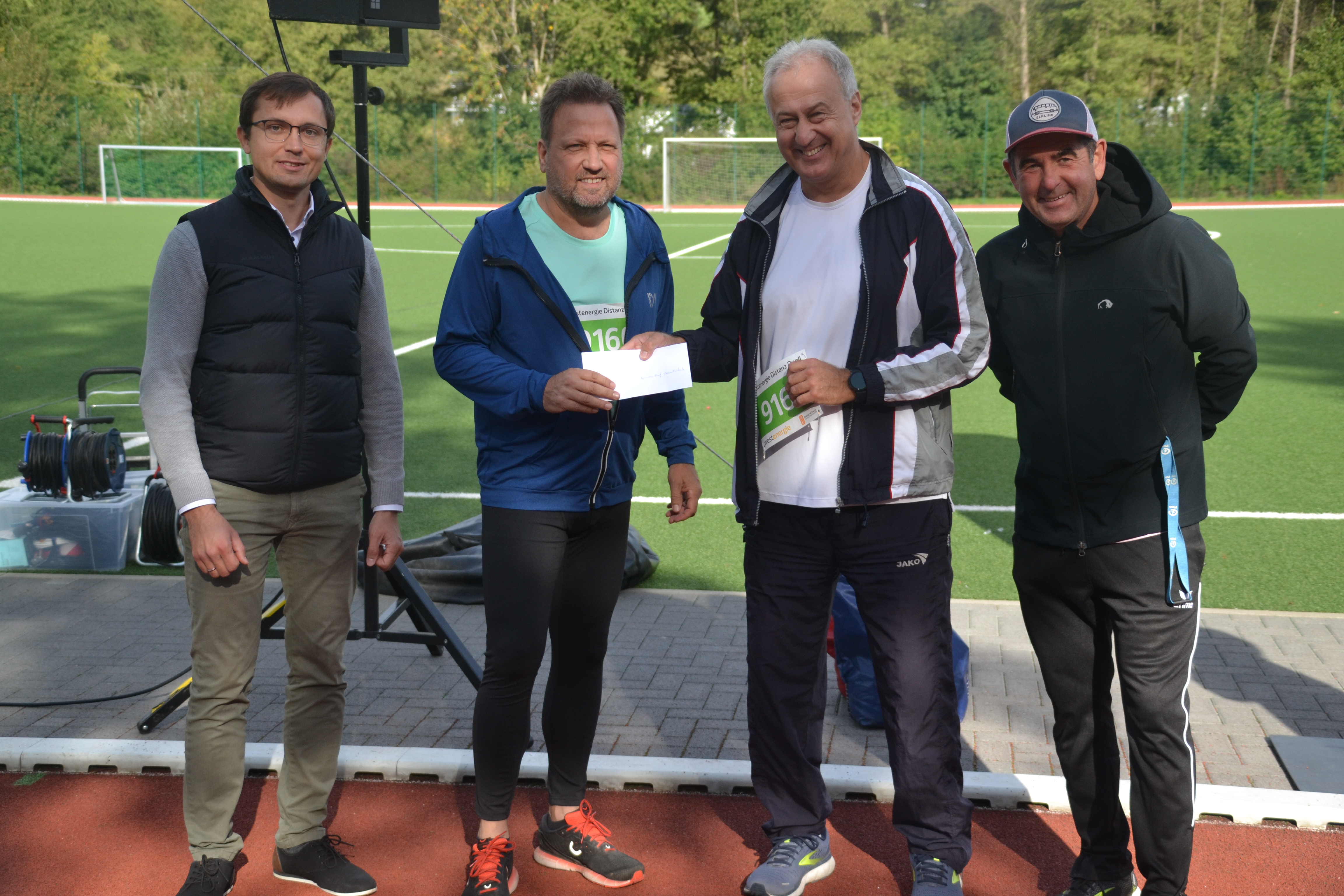 Bei der offiziellen Scheckübergabe lobte Schulleiter Godehard Mai das große Engagement der Schülerinnen und Schüler sowie der Lehrerinnen und Lehrer, die ebenfalls für den guten Zweck die Laufschuhe schnürten. Besonders erwähnt sei auch der Einsatz von Bürgermeister Lutz Wagner, der es sich nicht nehmen ließ ebenfalls seine Runden für den guten Zweck zu drehen.