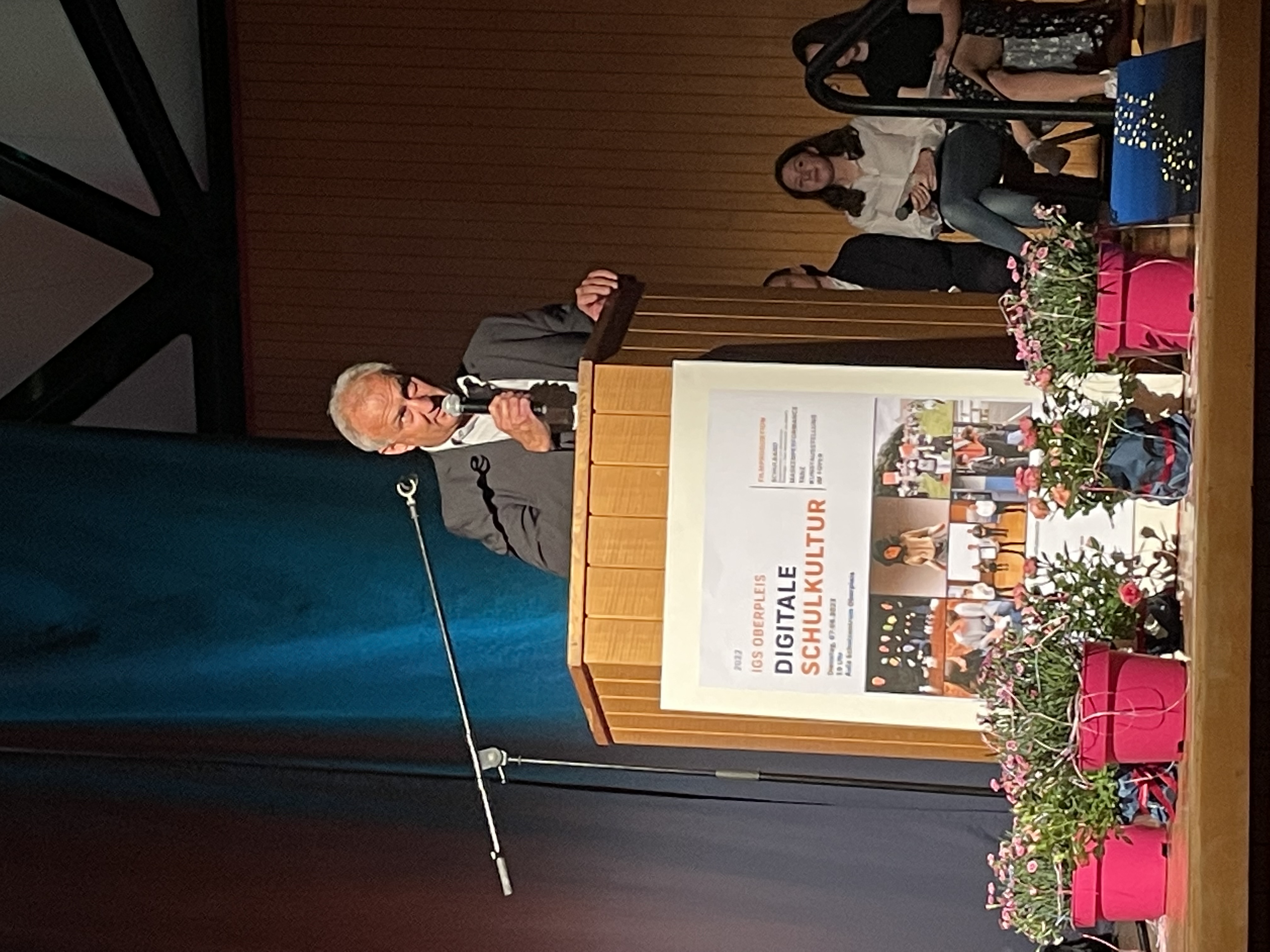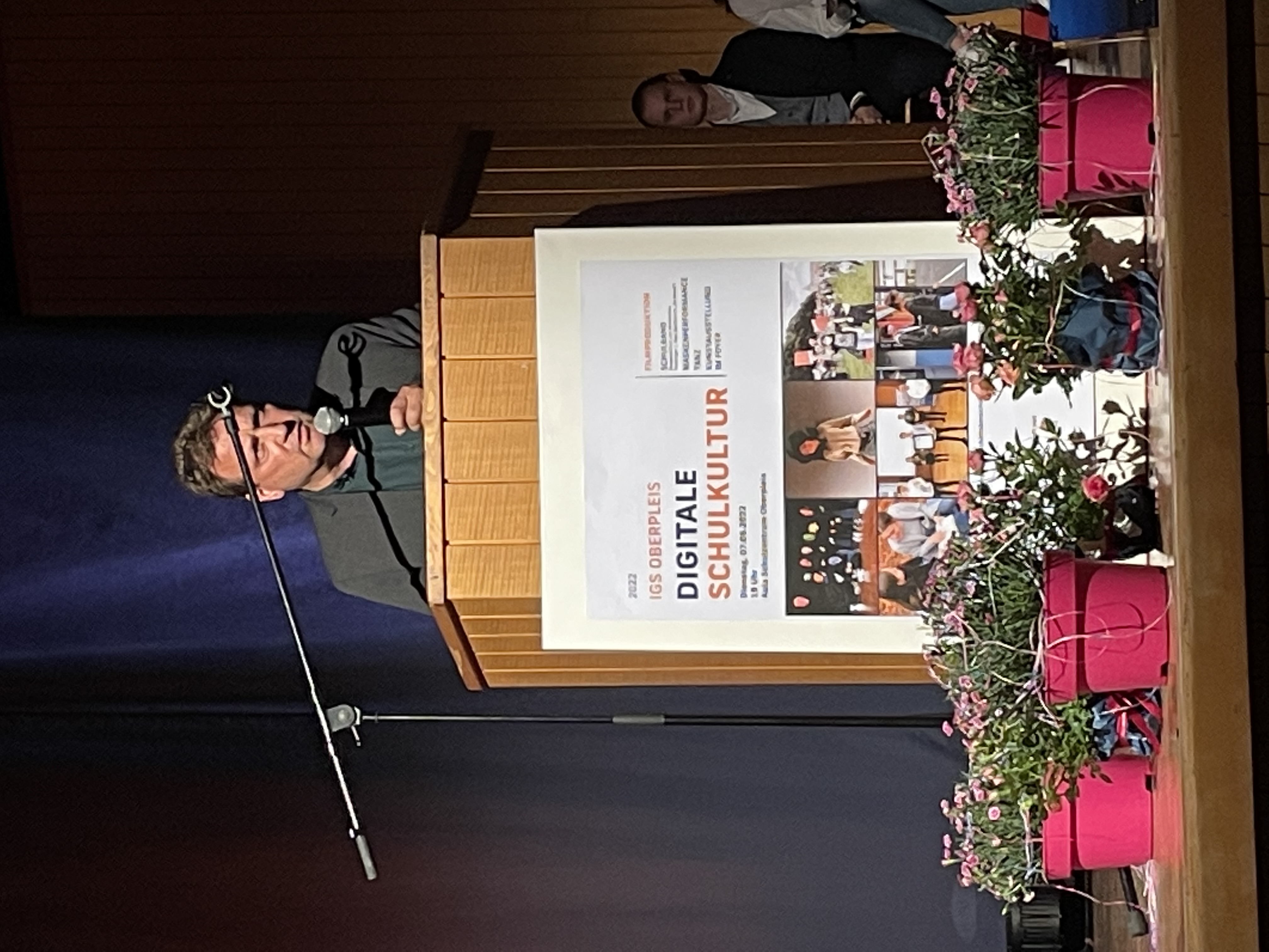 Im Beisein des Schirmherren der Veranstaltung, Bürgermeister Lutz Wagner, fand am 07. Juni die zweite Auflage der Präsentation „Digitale Schulkultur“ der Gesamtschule Oberpleis statt, die federführend von der Kunstlehrerin Barbara Wolff in Kooperation mit der Stadt Königswinter organisiert wurde. Waren bei der ersten Durchführung der Veranstaltung im Mai 2021 die Ergebnisse wegen des Lockdowns noch ausschließlich digital auf der Homepage der Stadt Königswinter präsentiert worden, konnten in diesem Jahr über 300 Besucher in der Aula des Schulzentrums Oberpleis begrüßt werden.