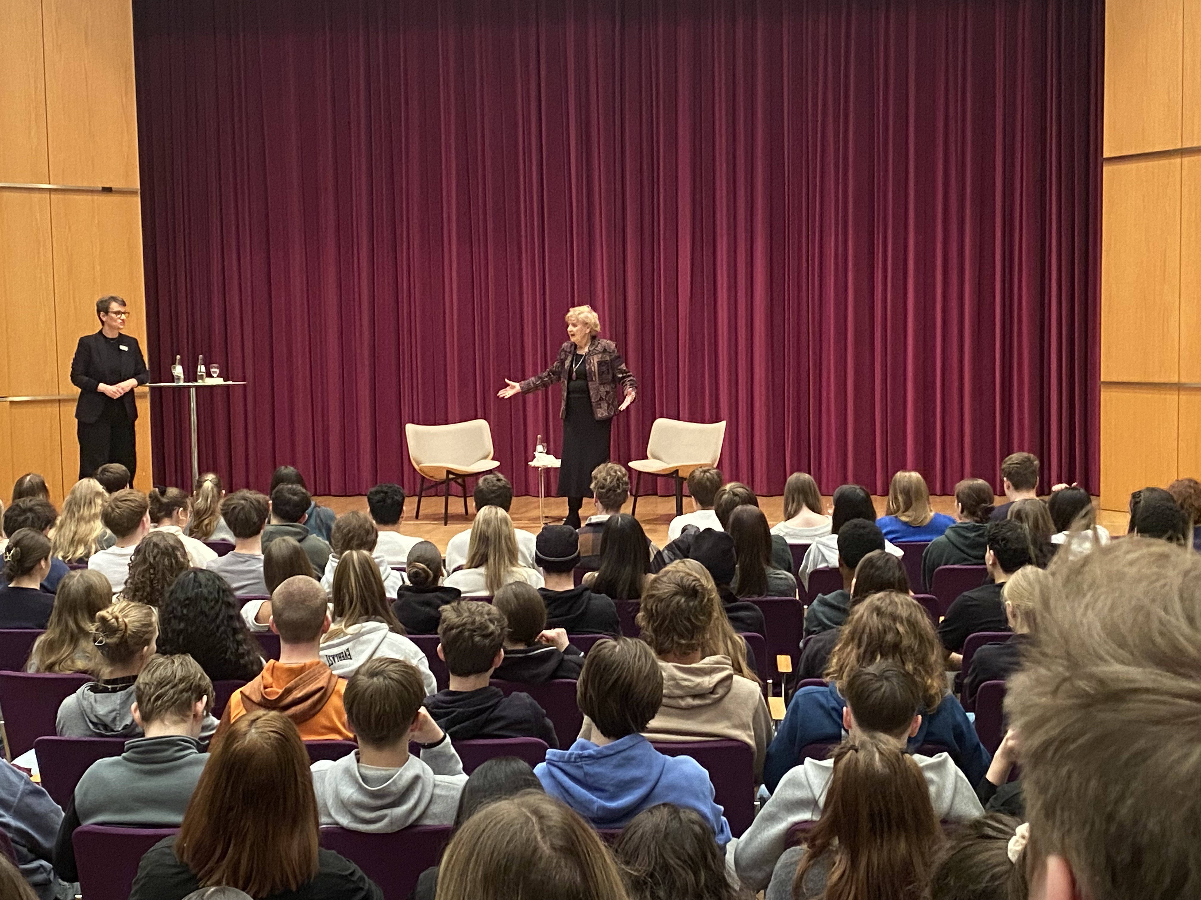 Friedman berichtete von der Angst im Lager, vom entsetzlichen Gestank, den sie nie vergessen konnte, und von den Rauchschwaden, die sie bereits als kleines Mädchen verstand. „Ich dachte, dass man einfach sterben muss, wenn man ein jüdisches Kind ist“, sagte sie. Besonders beeindruckte die Schülerinnen und Schüler, wie offen und direkt sie über ihre Erlebnisse sprach. „Man hat ja so viel von dieser Zeit gehört, aber wenn man jemanden trifft, der das alles wirklich erlebt hat, ist das noch mal etwas ganz anderes“, sagte eine Schülerin tief bewegt.