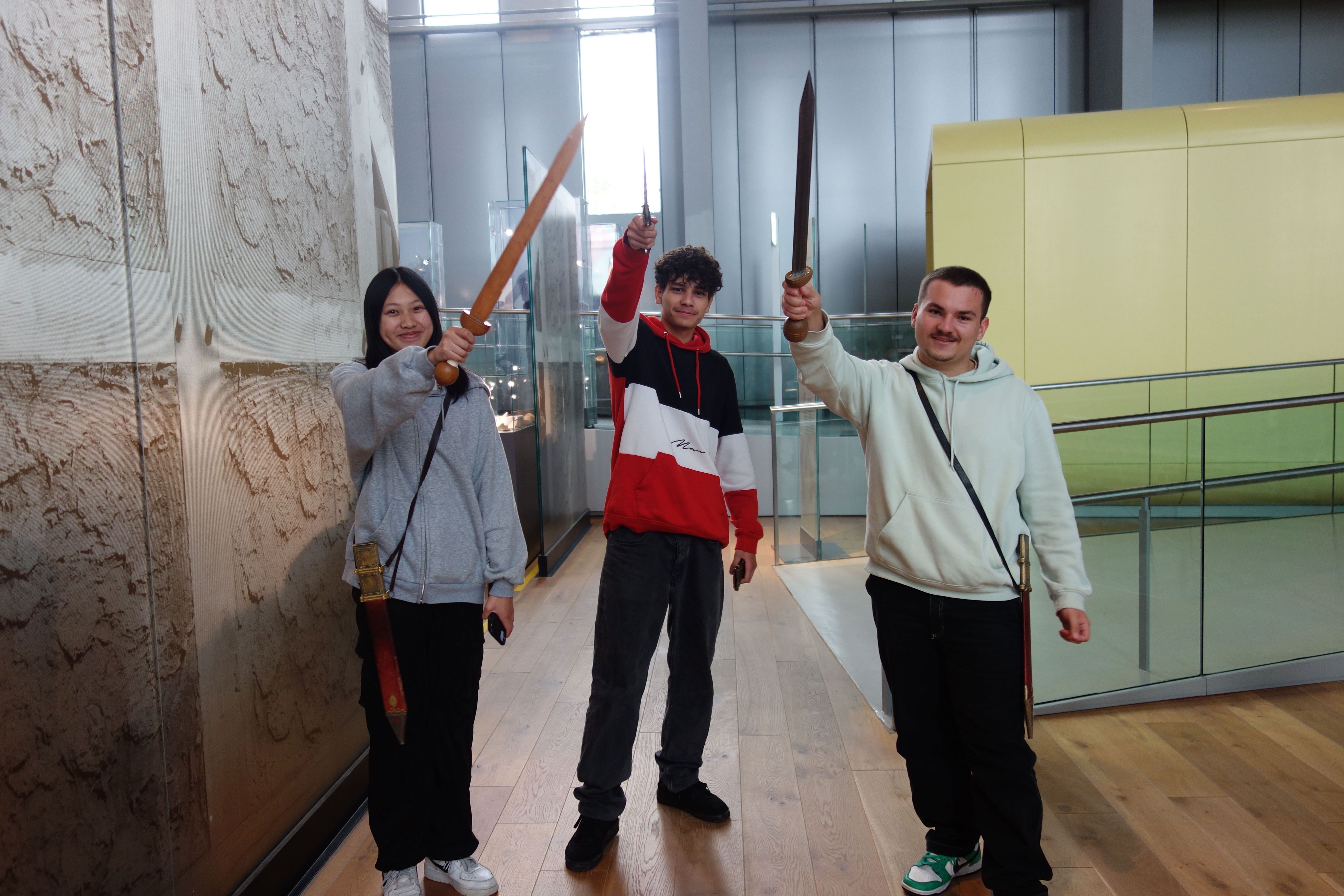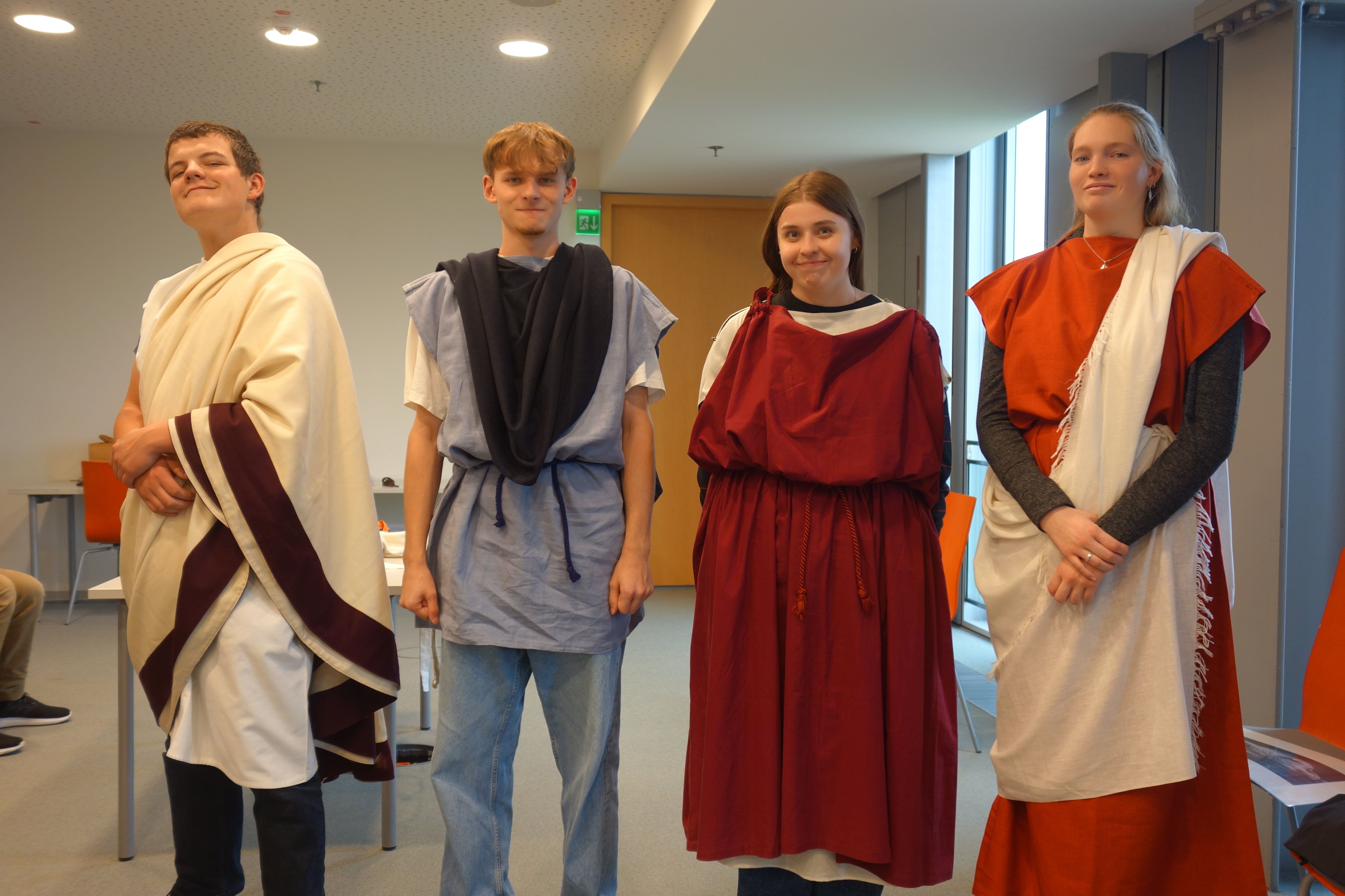 Nach der Ankunft dürfen die Schülerinnen und Schüler das Gelände, den atemberaubenden Naturraum und die antiken Gebäude in kleinen Gruppen erkunden. Unsere Lehrer Herr Übelacker und Herr Pinger treffen die Schüler gegen 12:00 Uhr wieder vor dem Museumseingang, da darauf eine Museumsführung stattfindet. Nach dem Eintreffen aller Gruppen werden wir durch das LVR-Römermuseum geführt und über die Zeit der römischen Legionen belehrt. Wir erhalten eine Aufklärung über die festgehaltenen Ereignisse: Invention des Stilus und Wachsschreibtafeln, wie die Menschen sich bekleideten, die verschiedenen Dialekte und warum der Mythos, dass Latein eine tote Sprache sei, falsch ist. Anhand verschiedener Schriften werden wir auf die unterschiedlichen Formen bzw. Abkürzungen aufmerksam gemacht. Zum Abschluss der Führung besichtigen wir eine Therme, welche echte, antike Grundbausteine aus der Zeit der damaligen Badeanlagen borgten. Im Anschluss beteiligten sich die Schüler jeweils an einem Kleidungs- oder Spiele-Workshop, welche beidseitig den Spaß, aber auch den Bildungsfaktor beinhalteten.