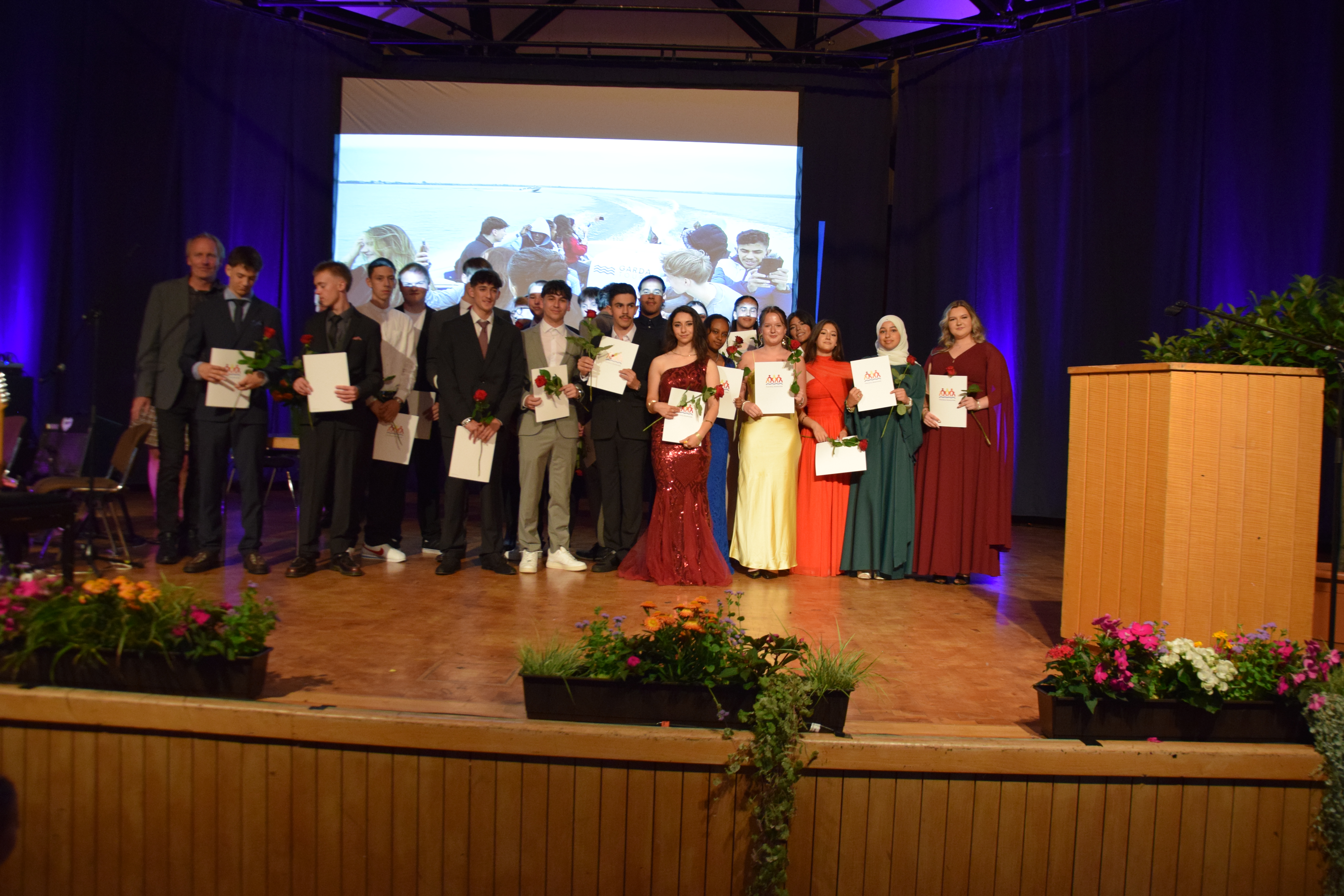 Auch die festlichen Reden verliehen dem Abend eine besondere Würde. Die Beigeordnete Frau Jüngling richtete anerkennende Worte an die Schülerinnen und Schüler und hob die Bedeutung von Zusammenhalt und Einsatzbereitschaft hervor. Der Elternvertreter wie auch die Schülervertretung nutzten ihre Beiträge, um Rückschau auf die gemeinsamen Jahre zu halten, Dankbarkeit auszudrücken und motivierende Worte für die Zukunft mitzugeben.