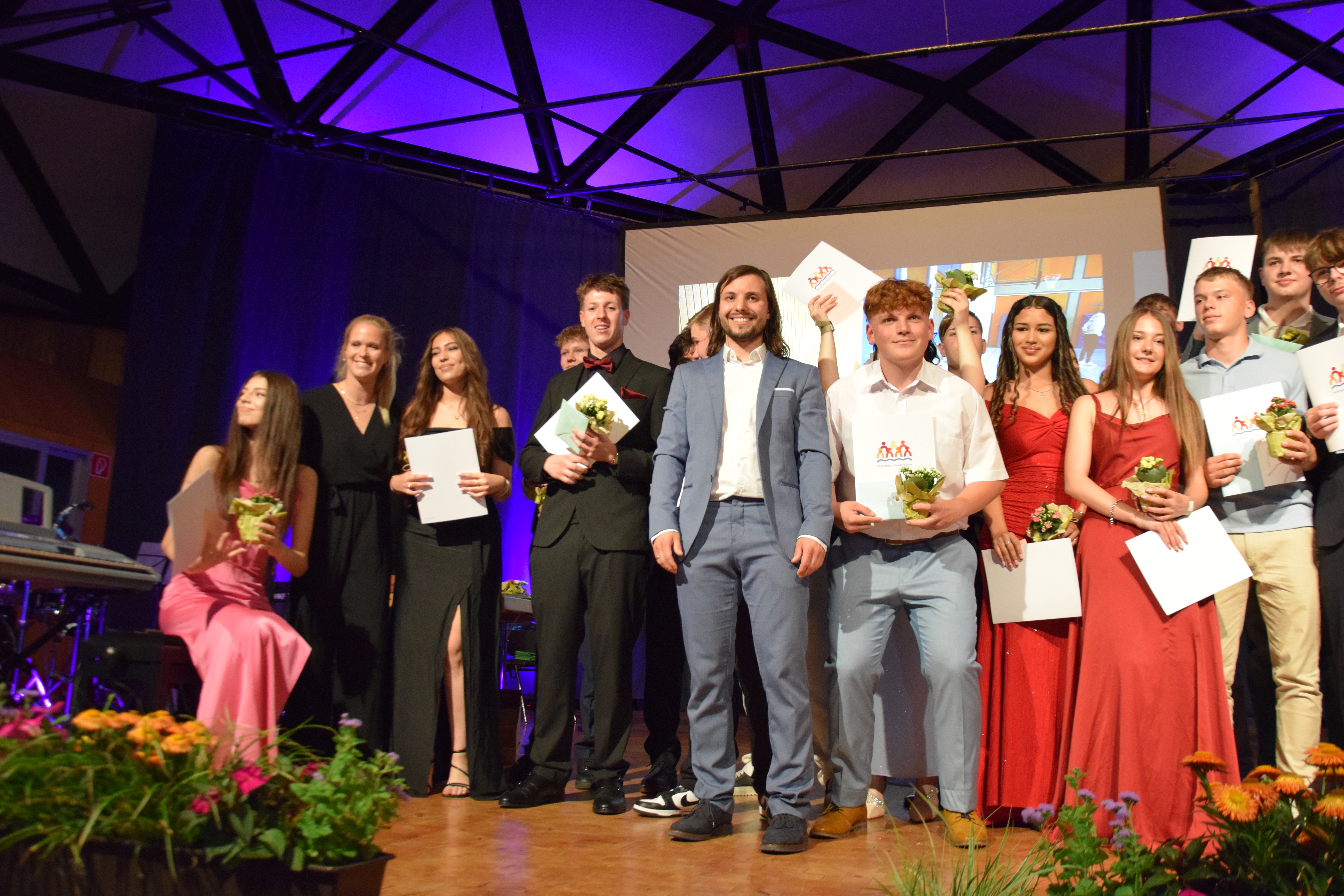In feierlicher Atmosphäre verabschiedete die Petersberg-Gemeinschaftsschule am Dienstag, 8. Juli, ihre 10. Klassen. Für die Schülerinnen und Schüler war es ein bewegender Moment, der den Abschluss einer wichtigen Etappe markierte – und zugleich für viele den Beginn eines neuen Kapitels: Mehr als ein Drittel der Absolventinnen und Absolventen haben sich entschieden, ihre schulische Laufbahn in der Oberstufe der Petersberg-Gemeinschaftsschule fortzusetzen.