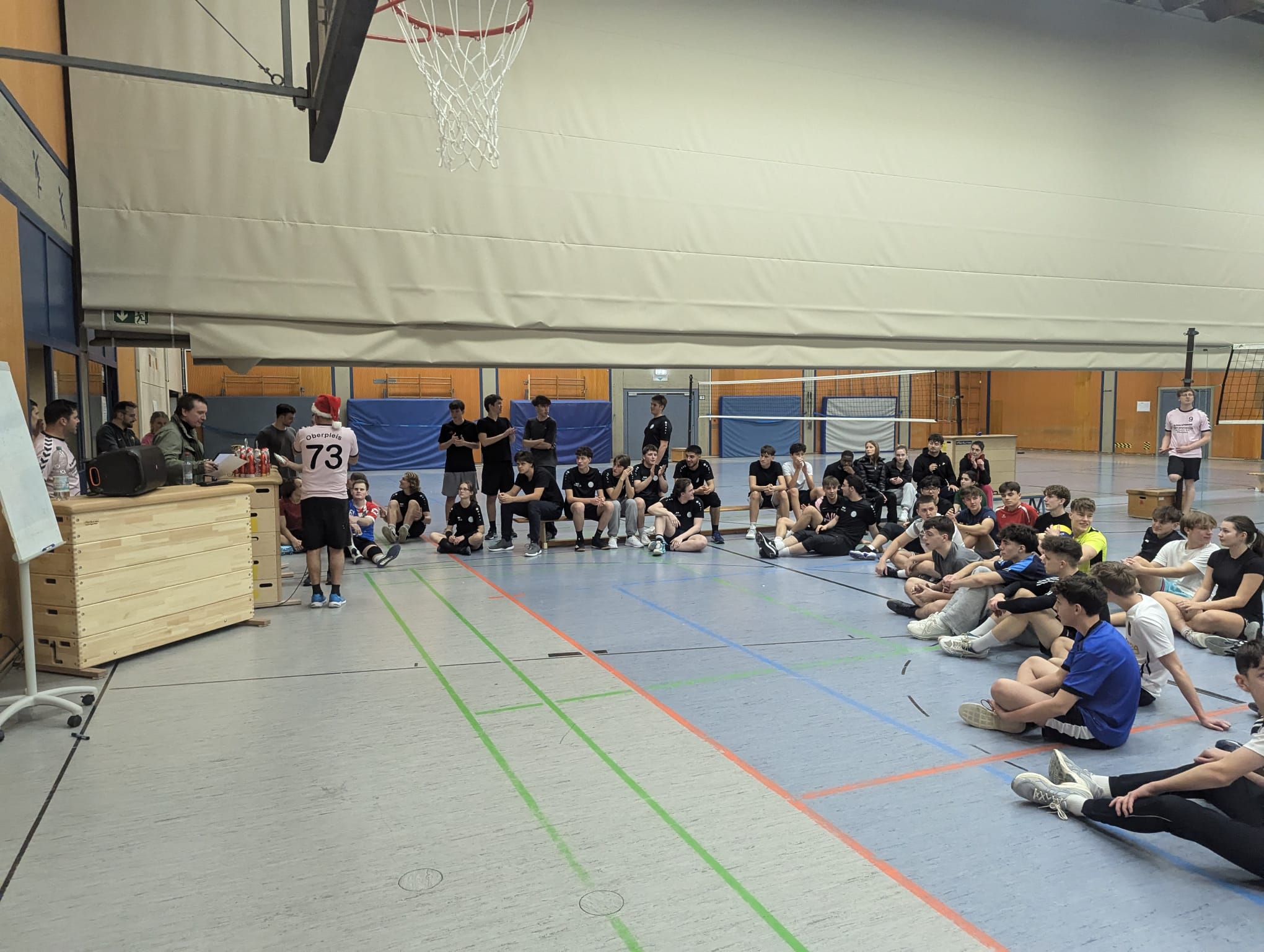 Am Freitag, 6. Dezember 2024 fand das traditionelle Nikolausturnier der Petersberg Gesamtschule statt, an dem insgesamt 13 Mannschaften aus der Oberstufe teilnahmen. In diesem Jahr war das Gymnasium am Ölberg erstmals mit vier Mannschaften vertreten. Der Spaß stand dabei ganz klar im Vordergrund, und die einhellige Meinung der Teilnehmer/innen war, dass es riesigen Freude gemacht hat, gemeinsam mit beiden Schulen ein Sportevent durchzuführen.