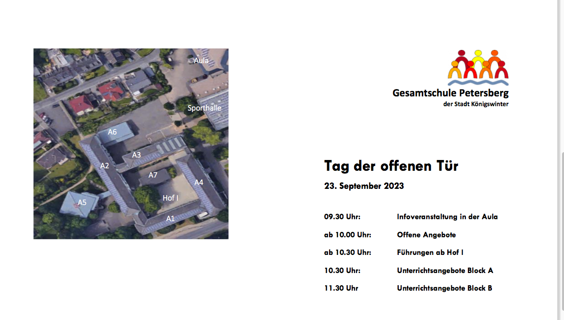 Am 23.09.2023 findet der Tag der offenen Tür der Petersberg Gesamtschule statt.