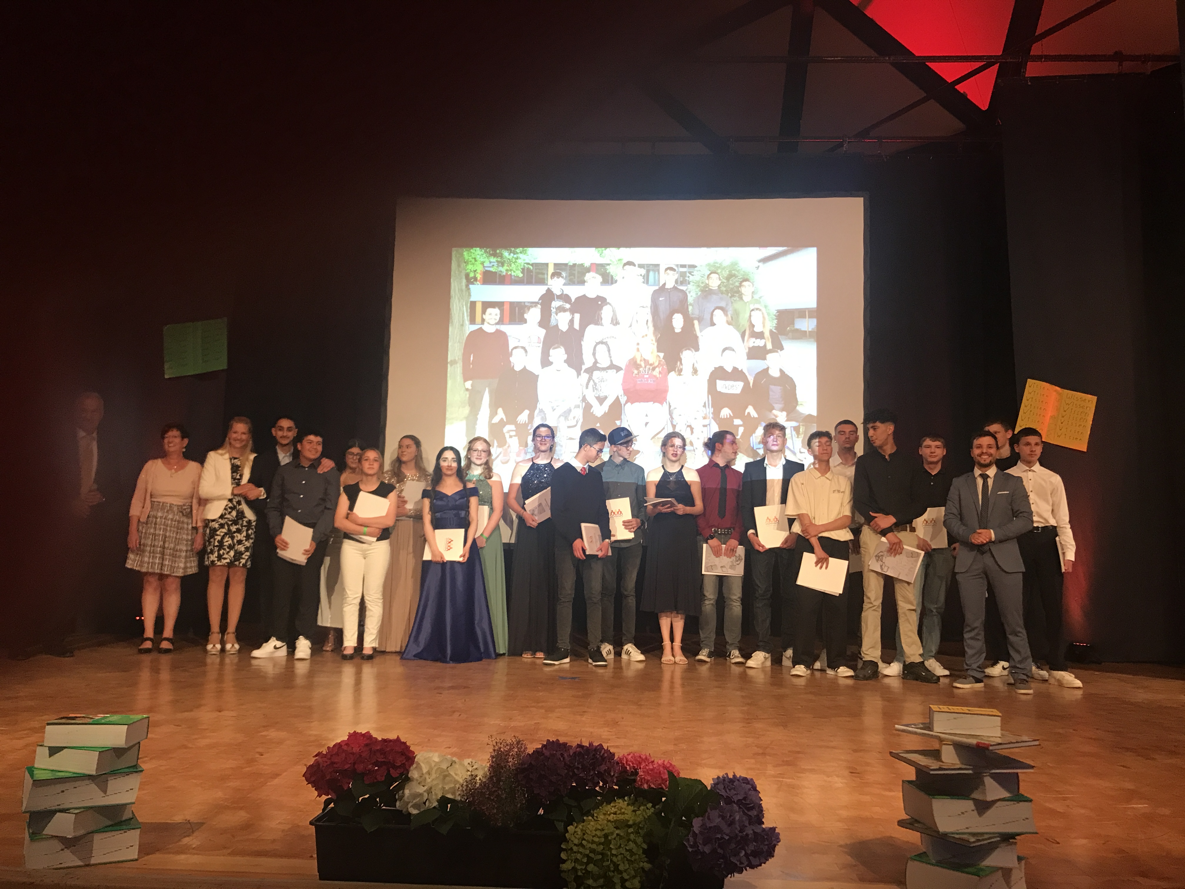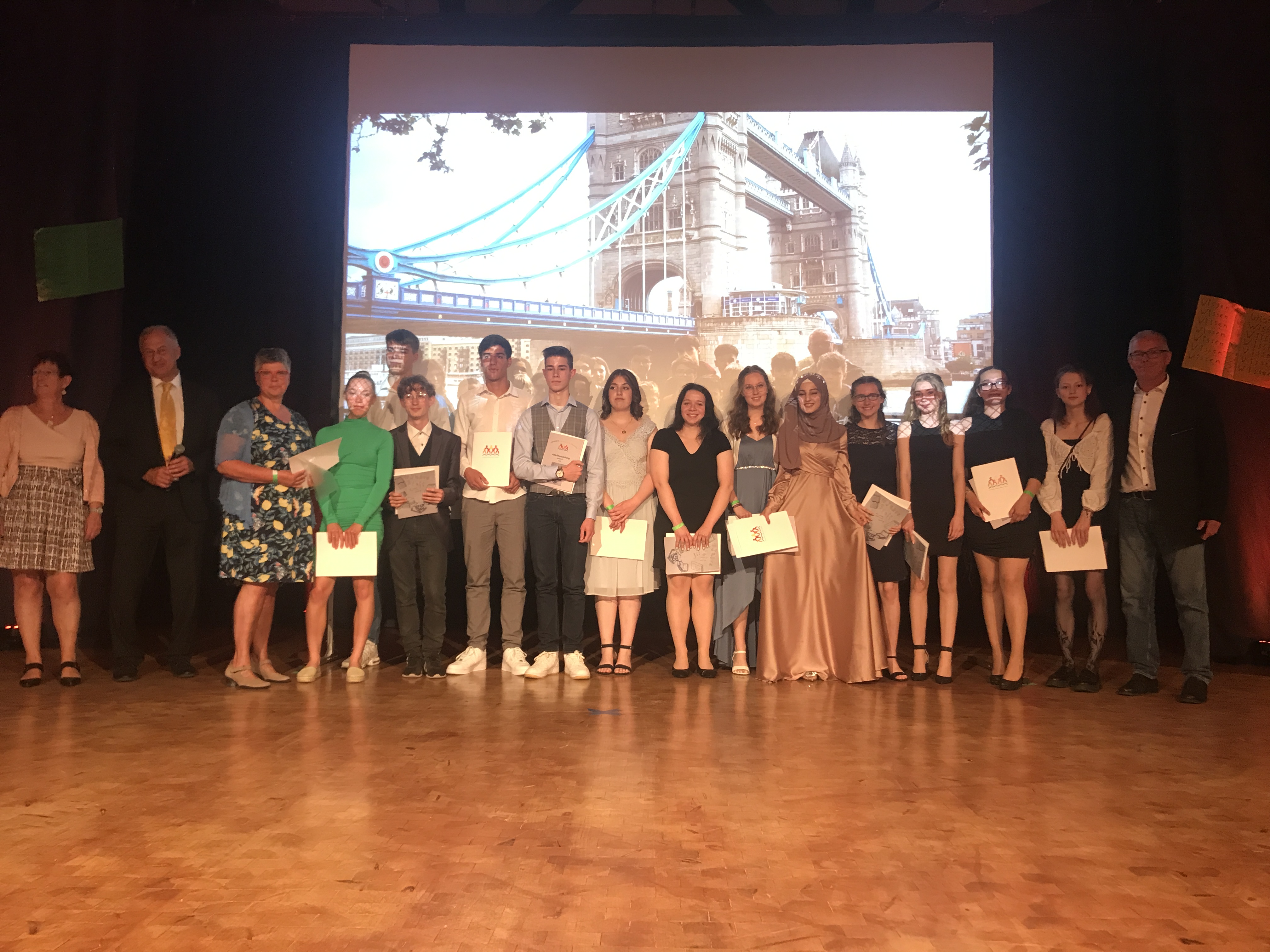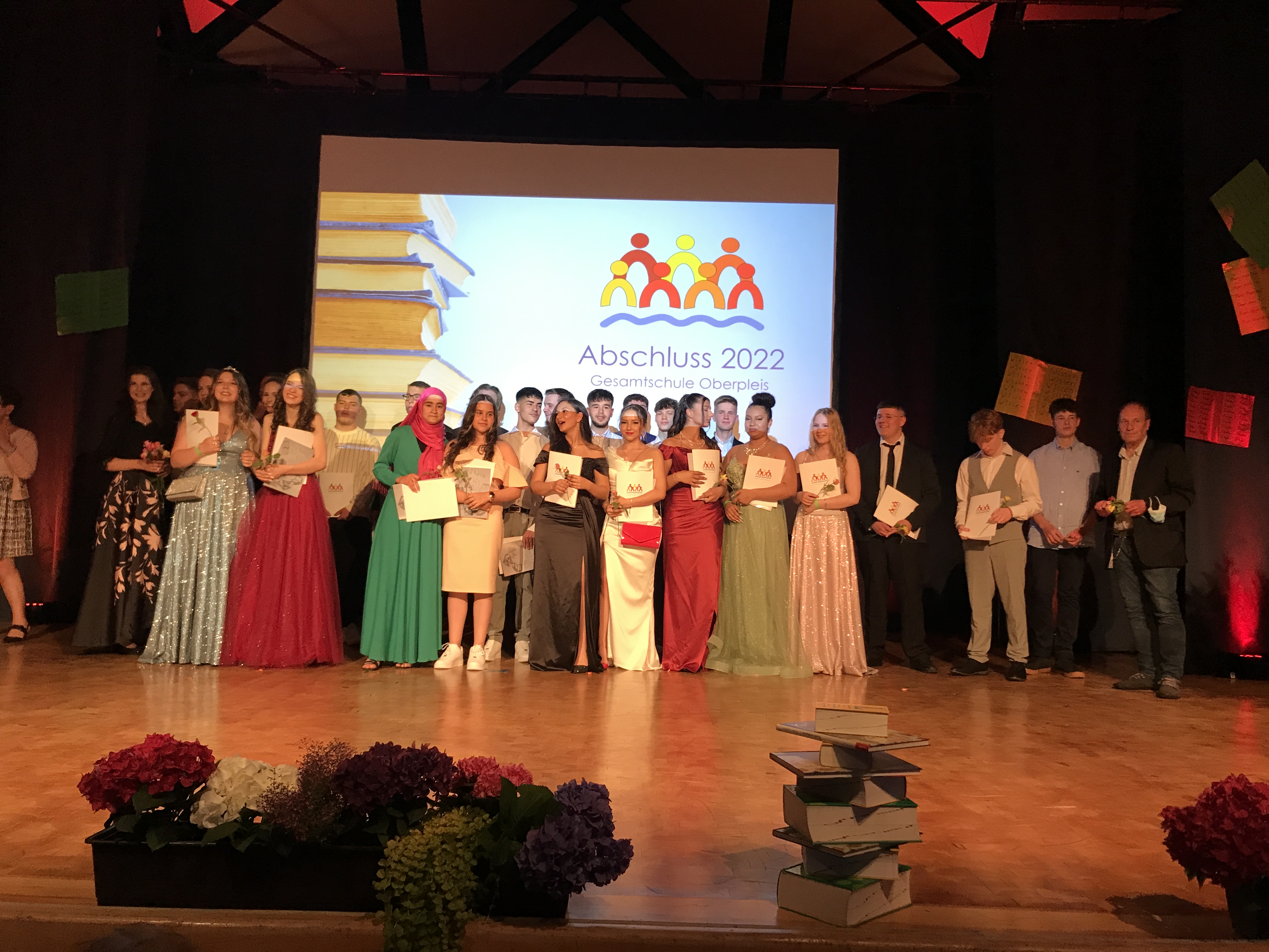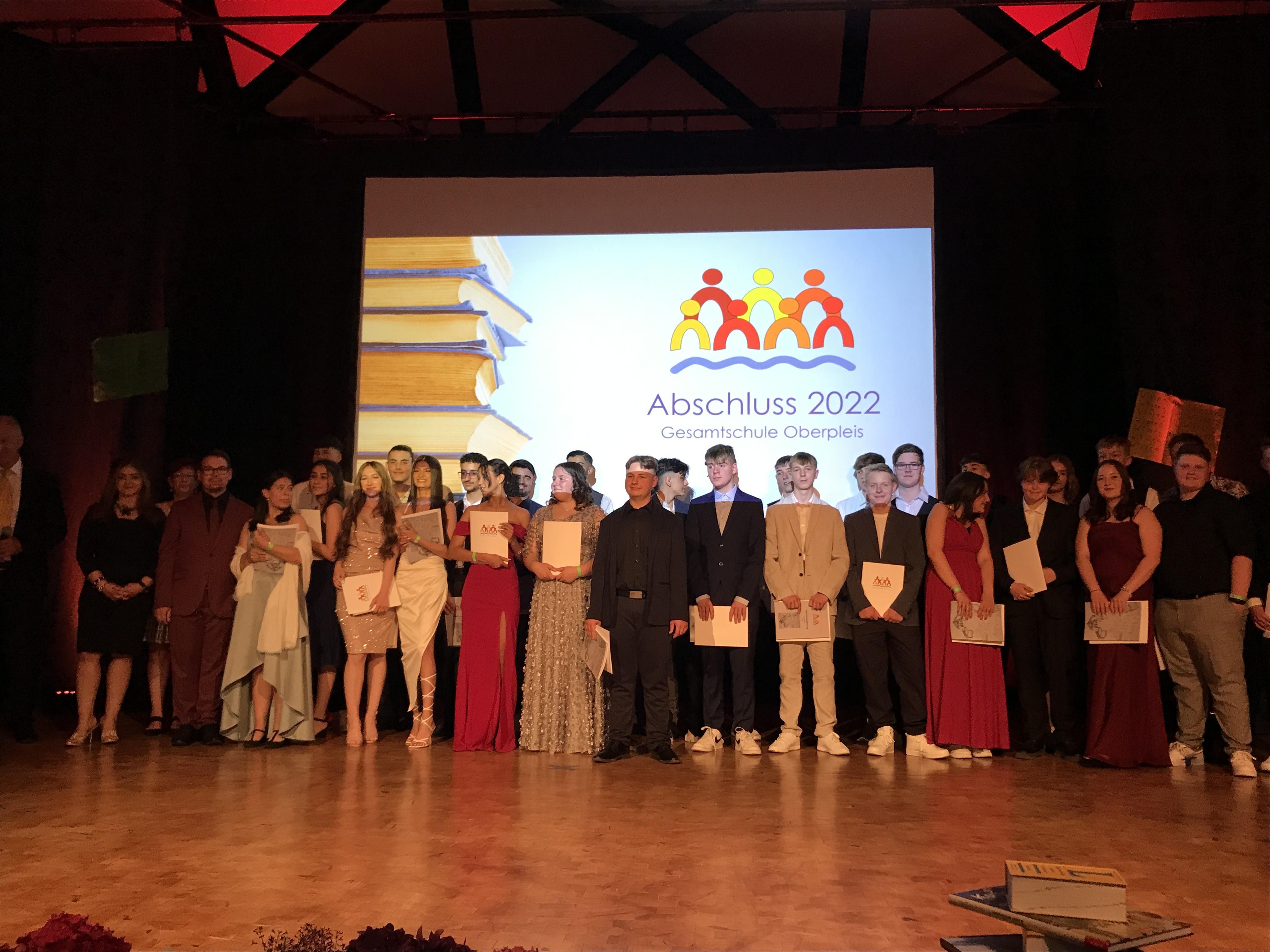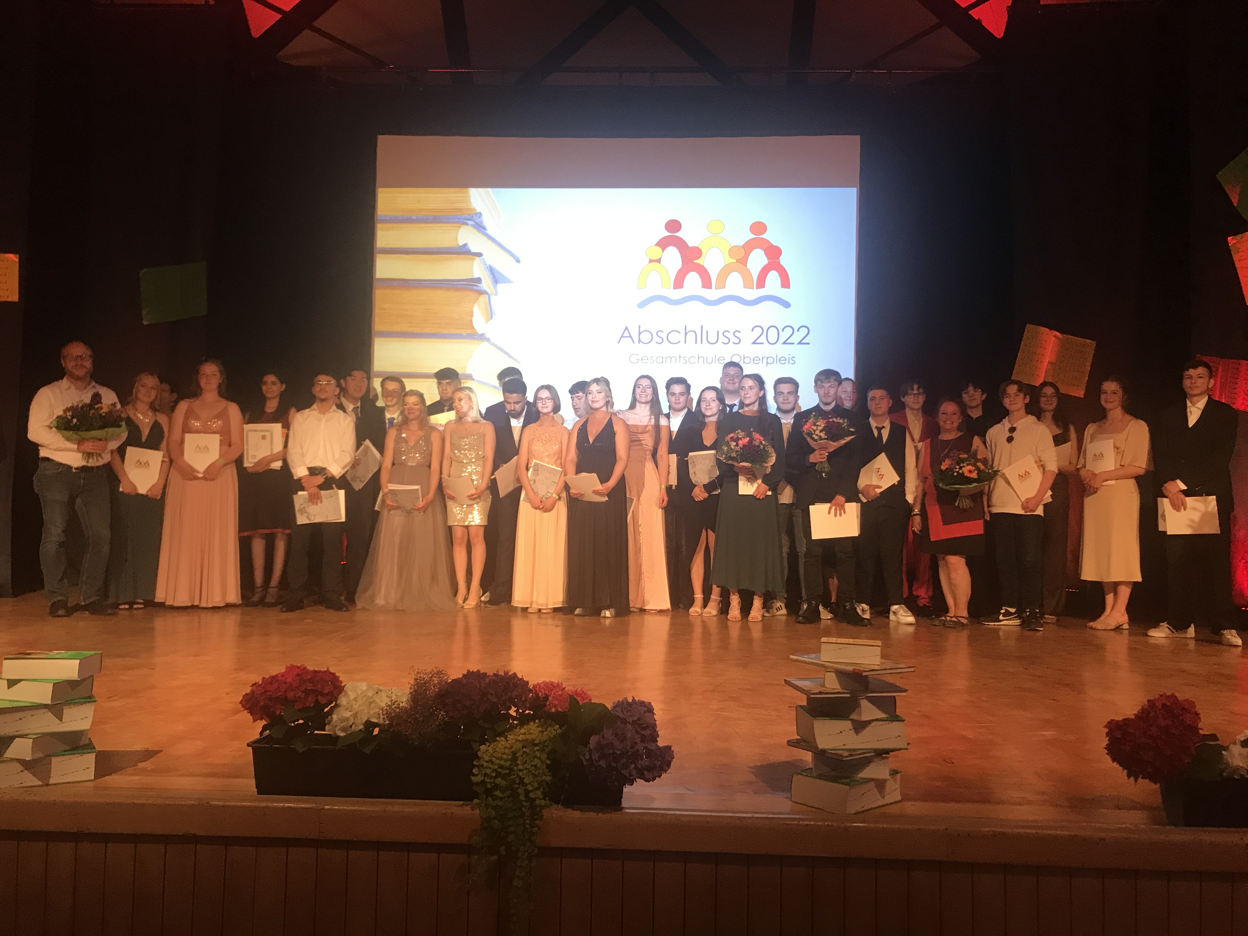Nach dem Abiturjahrgang verabschiedete die Gesamtschule Oberpleis nun auch die Absolventen des 10. Jahrganges. Insgesamt schafften 131 Schülerinnen und Schüler Ihren Abschluss, davon 87 mit der Fachoberschulreife. Einige bleiben der Schule auch in der Zukunft erhalten, da sie im nächsten Jahr die Gymnasiale Oberstufe der Gesamtschule besuchen werden. Insgesamt hatten 54 der FOR-Abschlüsse den dazu nötigen Qualifikationsvermerk. Dies ist insbesondere bemerkenswert, da nur 13 Schülerinnen und Schüler nach der Grundschule eine uneingeschränkte Gymnasialempfehlung hatten.